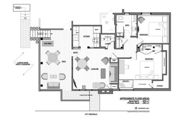 The apartment has a very private covered deck with great views to the West especially the evening sunsets. It overlooks a private patio just a few steps below. The deck is fully furnished with dining and lounging completed with a natural gas Weber barbecue.
