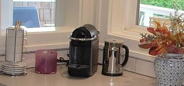The unit has a complete kitchen with gas cooking on a Bertazzoni range, dishwasher, full sized refrigerator, quartz & butcher block counters and all the tools needed for preparing great meals. It also has a complete array of appliances, expresso, steamer, toaster, blender and more.
