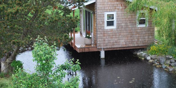 The PondHouse is a small but beautifully appointed accessory building with original art, queen bed, coffee bar and refreshing outdoor hot shower looking to a tranquil, pastoral setting.